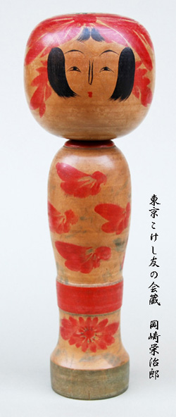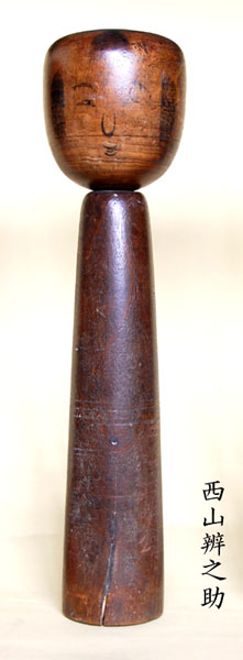 蔵王高湯の雛飾り用に作られた岡崎栄治郎も代表的な上手物だが、<古作図譜>に載った照井音治なども、手にした時の重量は相当なもので、幼児が持ったりおぶったりして遊び得るものてはない。描彩が定かでない程黒くなった古いこけしの中にも、尺以上のものが予想外に多く、このうちかなりのものが上手物として作られたと推量てきるのである。