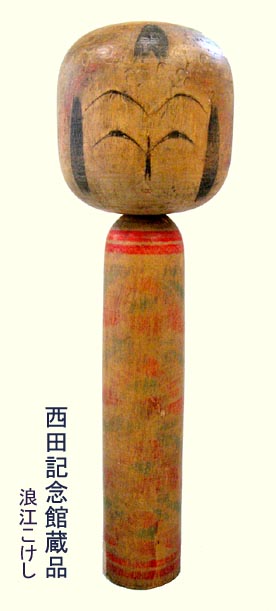 それではこの原物といわれる西田コレクションの浪江産はどうか。右の写真は「原郷のこけし群 西田記念館」より頂戴した浪江こけしの写真である。実は西田氏のものは四段の重ね菊であった。