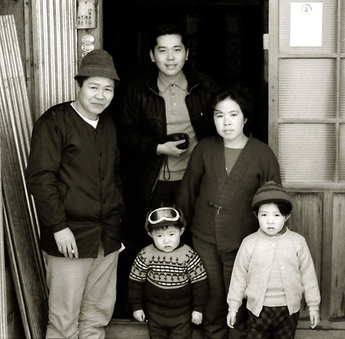 (左の写真 左から平四郎、箕輪新一、陽子、前列 たくみ、木の実)☆