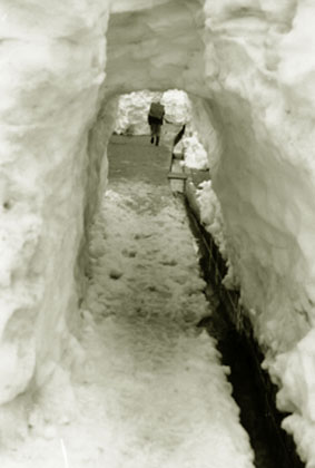 バスが通り始める時期には、もうそんな雪のトンネルを見ることは難しかったが、豪雪の年、春早く行ったときに、まだ何ヶ所かのトンネルは確かに残っていた。