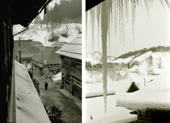 「雪がどんどん積もってゆくと、山間の盆地にある肘折はついにはすっぽり雪の中に埋まってしまう。家々や旅館では、積もった雪の中を蟻の巣のようにトンネルを掘りめぐらせ、その中を通って行き来している。」