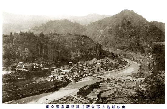 「旅に出る前、私は斎藤茂吉さんに逢った。出羽の温泉の優れた処を教えて下さいと言ったところ、白布の外は肱折だなあと話された。私は、雄勝・院内を越えて、秋田県の鷹の湯に一夜、引き還して新庄から肱折に這入って一晩を泊りに出かけても見た。やっぱり肱折はよかった。新庄からあんなに奥へ這入って行って、ああ言うがっしりした湯の町があろうとは思わなかった。どの家も大きな真言の仏壇を据えて、大黒柱をぴかぴかさせて居ようと謂った処である。湯を呑んだ味は、今まで多く歩いた諸国の温泉の中では、一番旨いと思った。一つは、私の味覚に最叶う炭酸泉の量が多いからであろうと思う。が、其ほかにも、かわったものを含んでいるようである。私は此湯場を中心にした色々な湧き場を歩いて見た。ここは標高はわりに低いから、真夏の今頃よりは、もっと涼風立って、農村の忙しくなった時分に、静かに入湯に来たいものと考える。