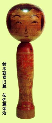 佐藤応助は芸事に目がなく、義太夫に長じ、踊りの師匠までやった人。その影響か佐藤栄治は山村弥治郎出身にしては、垢抜けて、渋く、歌舞音曲の煮凝りのような、情感溢れるこけしを作った。