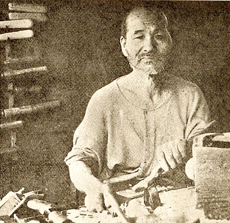 佐久間兄弟の中で粂松がこけし製作を再開した時期は最も遅い。再開のいきさつについては閑話(10)で述べたが、深沢要の訪問要請が契機であり、再開の初作は昭和十五年三月であった。明治三十三年に故郷土湯を離れて以来、実に四十年ぶりのこけし復活であった。この時の深沢要の旅行は、富田の伊藤蝠堂が主催する於茂千也祭のために、頒布のこけし買い付けを頼まれたものであったから、復活初作数本は手元に置いて、注文して届いた初期のものは於茂千也祭に出品されたであろう。伊藤蝠堂蔵の粂松は深沢の初作に近いものであった。