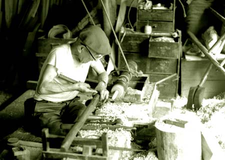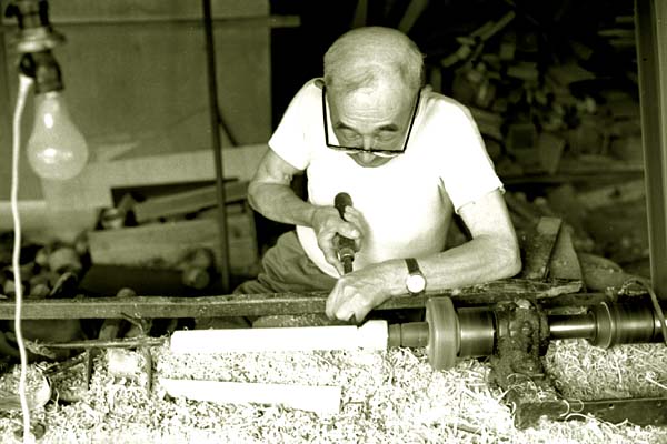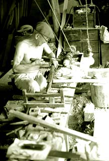 松田木工所で木地を挽く松田精一(昭和四十二年)