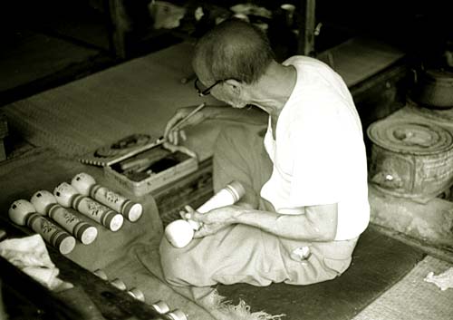 昭和四十三年に私が訪れたときは、元気に木地を挽き描彩も続けていたが、その年の末に中風で倒れこけし製作を中止、昭和四十七年に八十二歳で亡くなった。この時の五平はすでに耳が遠く、話はなかなか困難であったが、後の伊藤松三郎からの聞き書きと合わせて、明治大正の鳴子工人の花巻周辺での活動を知る上で役に立ち、「こけし辞典」執筆の資料の一つとなった。