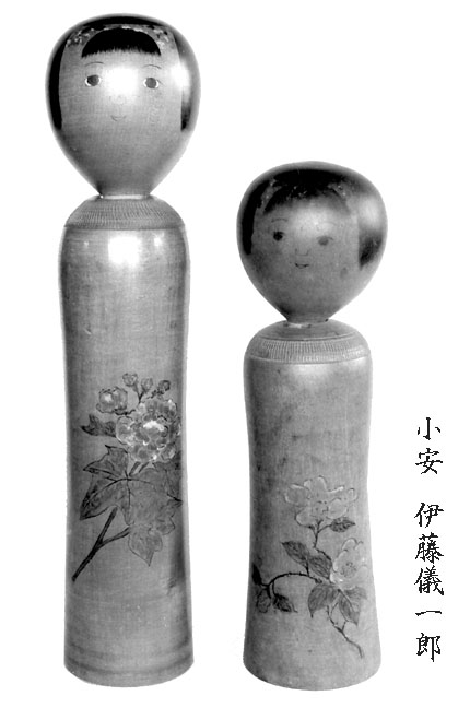 儀一郎は木地を養父伊藤政治から習ったが、鳴子の高橋利四郎に手直しを受け、小物の技術は優秀であった。木地業は大正末まで小安で続け、大正十三年には鈴木軍治氏によってこけし作者として報告されたが、その後転業して滝ノ原発電所の水槽番を務めていた。こけしは蒐集家に請われて余暇に作る程度であり、また病気がちでもあったから数は稀少、武井氏による激賞以後はさらに入手困難で蒐集家渇望のこけしとなった。昭和八年五十二歳で亡くなった。地元の人も儀一郎のこけしを大切にしているが、石井眞之助の探求によると皆瀬村の村長、郵便局長、発電所長、病院長の四名のところにしか地元には残っていないという。石井眞之助の忠告にも拘わらず、深沢要は儀一郎を手に入れんと小安を訪ねる。それが、「こけしの微笑」の「小安紀行」である。儀一郎が住んだ水槽番の小屋にも訪れ、未亡人とも会ってきている。このとき小安では子供が遊んで黒くなった三寸くらいの儀一郎と、佐藤留治という古い作者の同じように黒くなったこけしとを手に入れた。それなりに収穫のある小安行きであった。