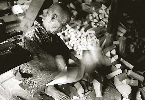 昭和四十年三月、木取りをする高橋武蔵。