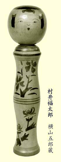 ここに紹介する村井福太郎のこけし八寸三分は横山五郎氏旧蔵で、小山内清晴の描彩、昭和七年ころの作品である。