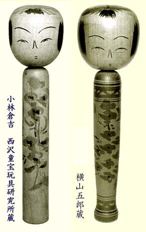小林一家は明治三十八年頃までこけしを盛んに作ったが、薄荷入れの需要が高まると、その生産に追われて、玩具類を作る余裕はほとんどなくなった。こけしを再開するのはこけし蒐集家が現れるようになってからで、現存するこけしは倉吉、吉太郎が大正十年代、吉兵衛が昭和十二年頃、吉三郎が昭和十五年頃以降である。