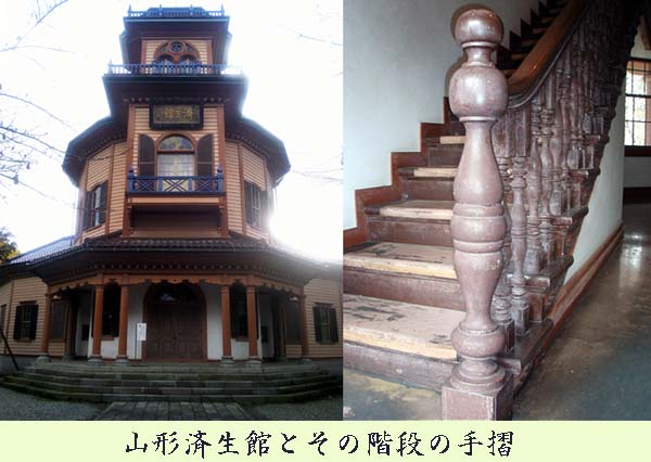 明治の文明開化によって西洋建築が山形に入ってきた頃、建てられた県庁や済生館の階段の手摺や擬宝珠も倉治が挽いたという。山形県庁は残念ながら明治四十四年の大火で焼失。現在国の重要文化財になっている山形県旧庁舎(文翔館)は大正五年に再建されたもの。一方、明治十一年に着工落成した済生館は類焼を待逃れ、現在は霞城公園内に移築されて山形市郷土館として現存している。